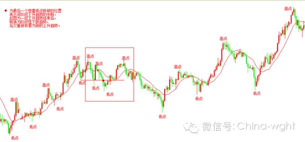 最后,在判断趋势的时候,特别要注意时间的分别,一个大的下跌趋势当中,必然有小的下跌趋势和小的上涨趋势来构成,小的下跌趋势的中介表示的是该阶段走势的结束,接下来的小的上张趋势是否扭转大的趋势则必须要拿到大级别的走势下去分辨,绝对不要因为小的趋势的扭转而认为大趋势也发生了扭转。关于趋势的规模我们会在第三节详细讲到。